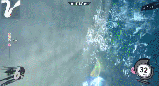 ——听起来很简单,但这种情况只存在于理论之中。《卡比的驭天飞行者》和其他任何赛车游戏都不同的地方在于,玩家攻击对手或NPC时会获得加速度。也就是说,在实际比赛中,光靠驾驶技术是远远不够的,还要边开车边揍人才能最先冲到终点。